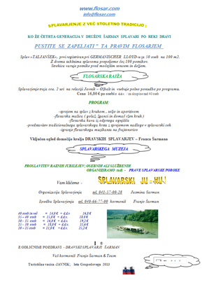 Danes Flosarske rajže z nami - mladim rodom Dravskih Splavarjev, predstavljajo eno glavnih atrakcij in doživetij v tem predelu Evrope. Nagajivi in hudomušni so bili naši dedki – taki smo danes mi.